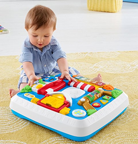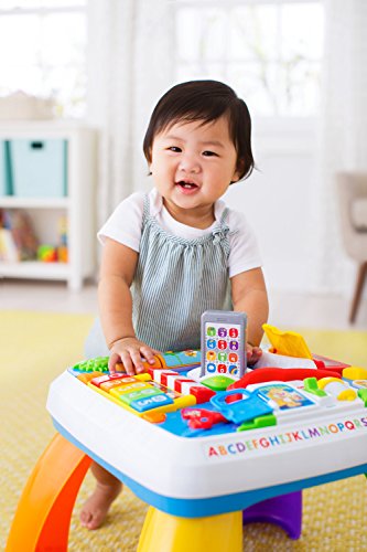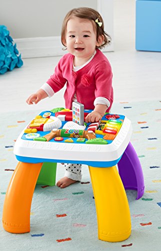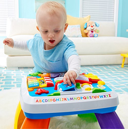 Fisher-Price Laugh & Learn Around The Town Learning Table (Toy)Features: 4 fun places for baby to visit: Puppy's home, the market, the zoo and the farm, Press the interactive phone button for fun phrases that add to the role-play fun, 9 lights and more than 120 songs, tunes & phrases, Includes Smart Stages technology with 3 levels of play that grow with baby, Add legs when baby's ready to move from sitting & playing to standing & cruising Baby will find a new place (and tons of activities) to discover around every corner of this learning table. Head to the zoo and spin the roller to hear songs about animals – or press buttons to learn shapes in English & Spanish. Take a trip to the farm and open & close the barn door to be greeted by a different farm friend. At the market, press the keys to play the piano and learn about numbers, foods & colors. Now it’s off to Puppy’s home! Open & close the door to hear Puppy sing his ABCs, and flip the light switch to learn opposites. In the middle of the table, your little one can press the interactive button on the role play phone to make a “call” to Puppy or Sis, and light up a new place to visit! And there are hands-on activities all over town to keep baby busy, including sliders, spinners and more. You can even add legs for grow-with-me play that takes baby from sitting & playing to standing & cruising. Every baby learns & plays in different ways. Smart Stages technology lets you select the stage that’s best for your child on any given day! Switch up the level to switch up the learning fun, and offer up a different variety of phrases, songs & sounds for your little one! Smart Stages Technology Level 1 – Explore. First words and sounds spark baby’s curiosity. Level 2 – Encourage. Prompt baby through questions and simple directions. Level 3 – Pretend. Imaginative fun and early role play.